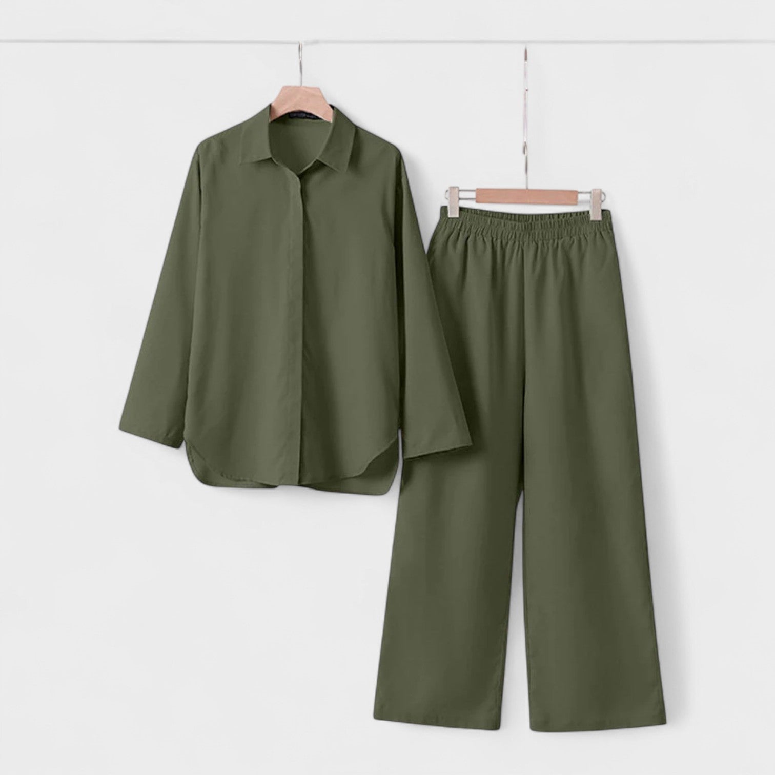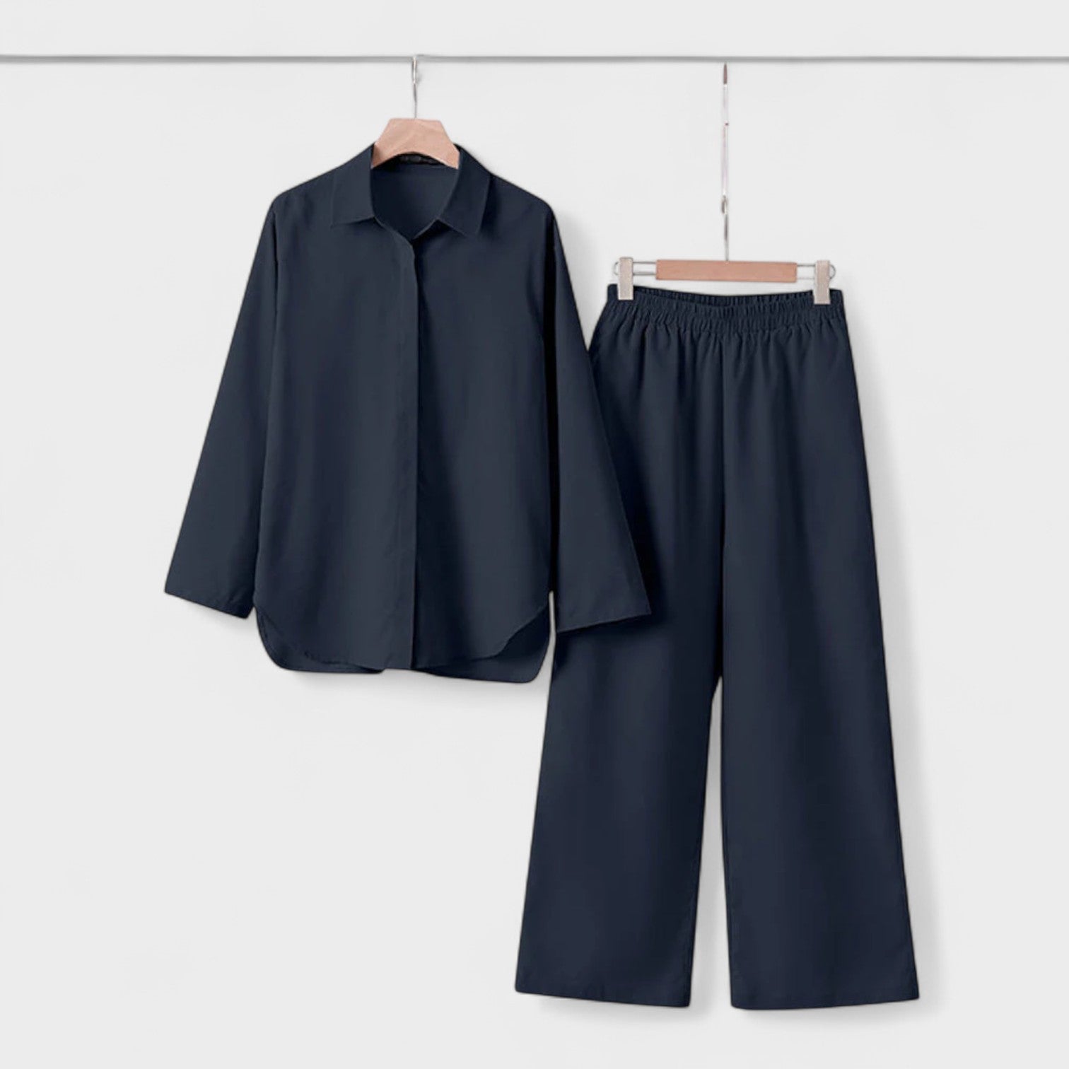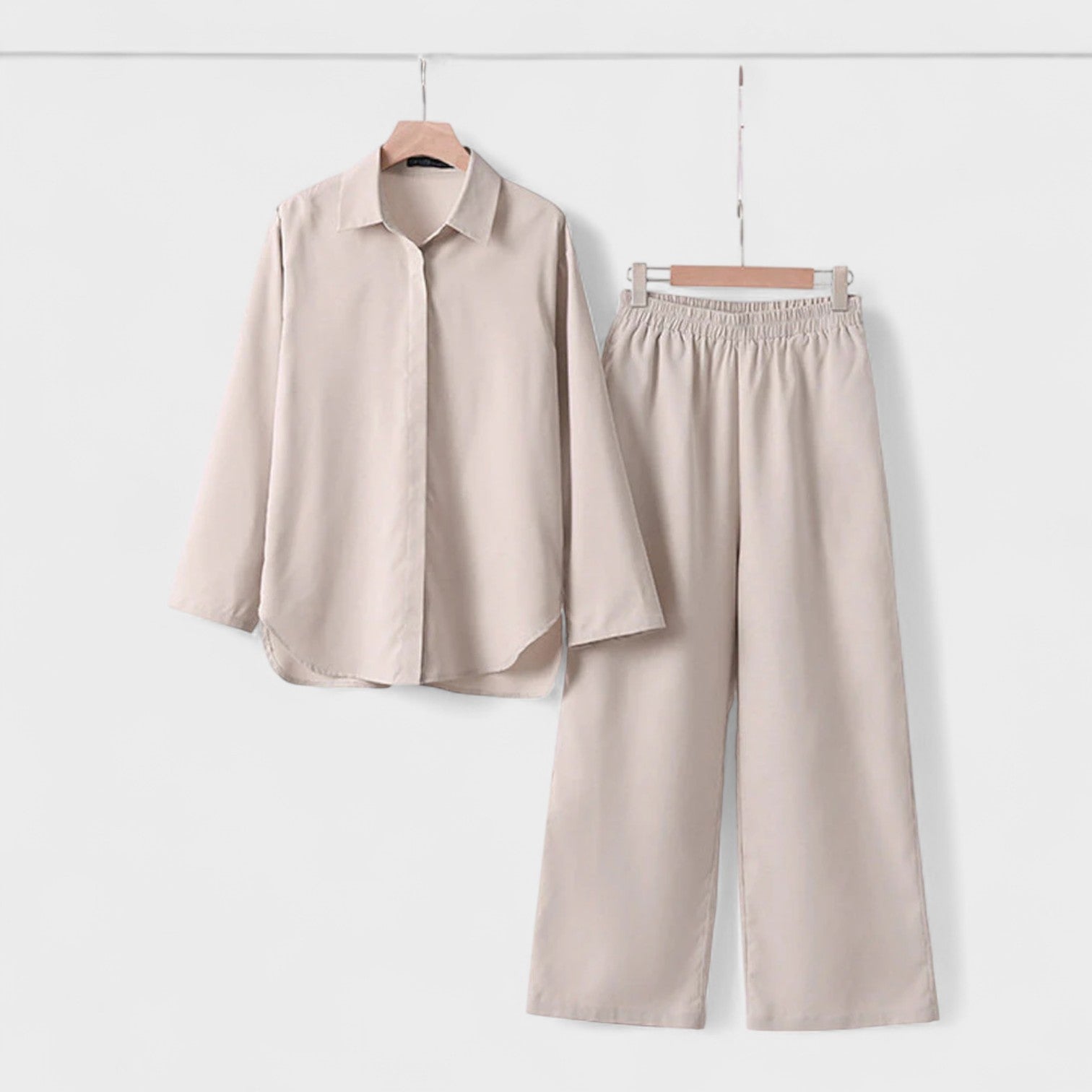 Este conjunto de linho une elegância natural e praticidade com um toque moderno. Com camisa de corte solto e calça reta de caimento leve, é ideal para quem busca um visual sofisticado sem abrir mão do conforto.